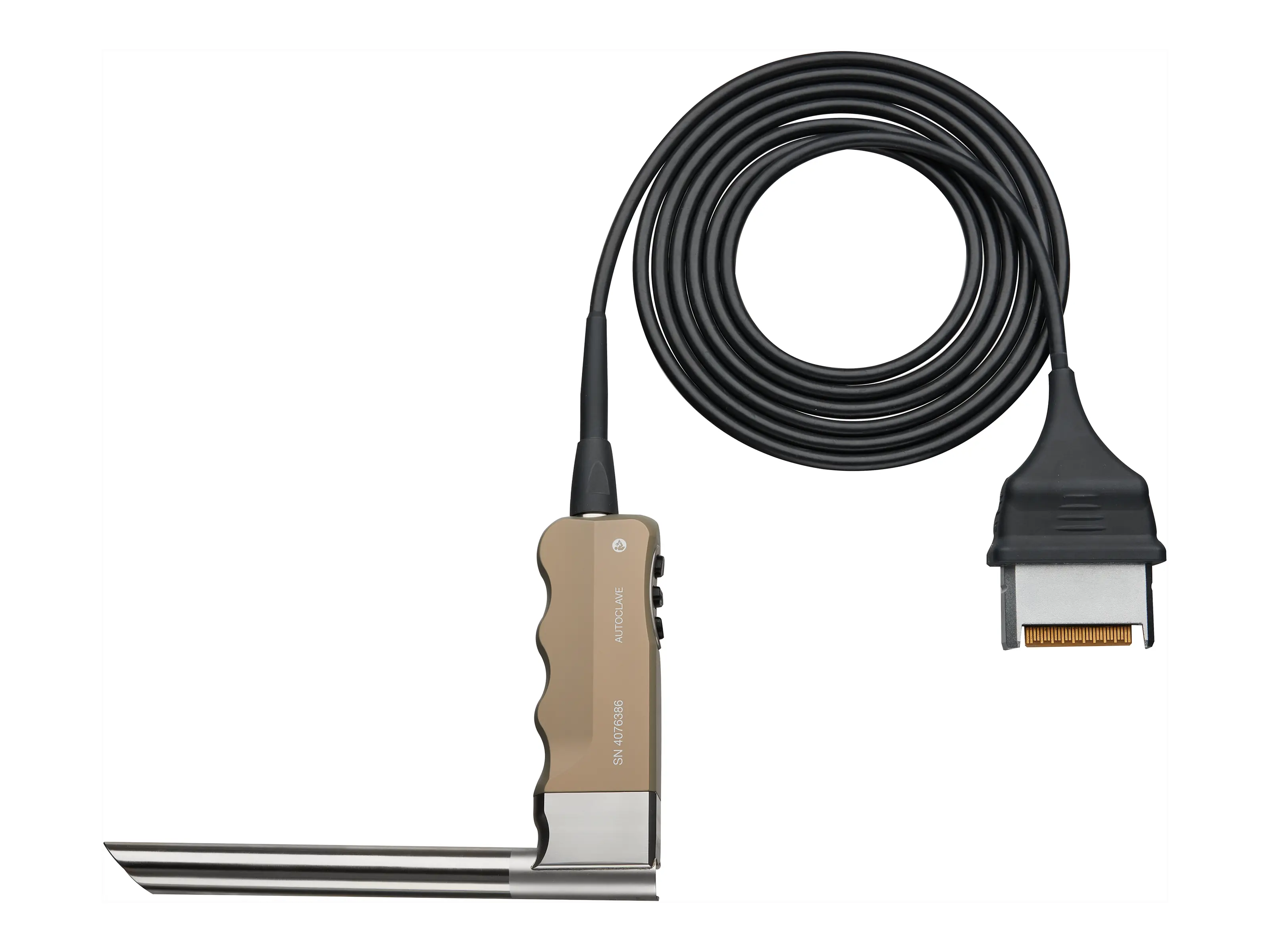 The compact HD video mediastinoscope is based on the CMOS chip-on-the-tip sensor technology and is equipped with an LED light source integrated in the handle. It is lightweight, has a balanced weight distribution, and is fully autoclavable. It can be used in combination with either the KARL STORZ IMAGE1 S™ camera platform and the CONNECT and X-LINK modules or with the KARL STORZ TELE PACK+, the compact and portable camera system with a FULL HD camera control unit and integrated network function.It can also be connected to the TELECAM C3 FULL HD control unit. Special Features: Compact handle with integrated LED light source, keyboard with haptic feedback for camera menu control, CMOS chip-on-the-tip sensor technology in the blade, blade with uninterrupted right lateral slit, Plug & Play - one cable outlet with plug connection to the X-LINK module.