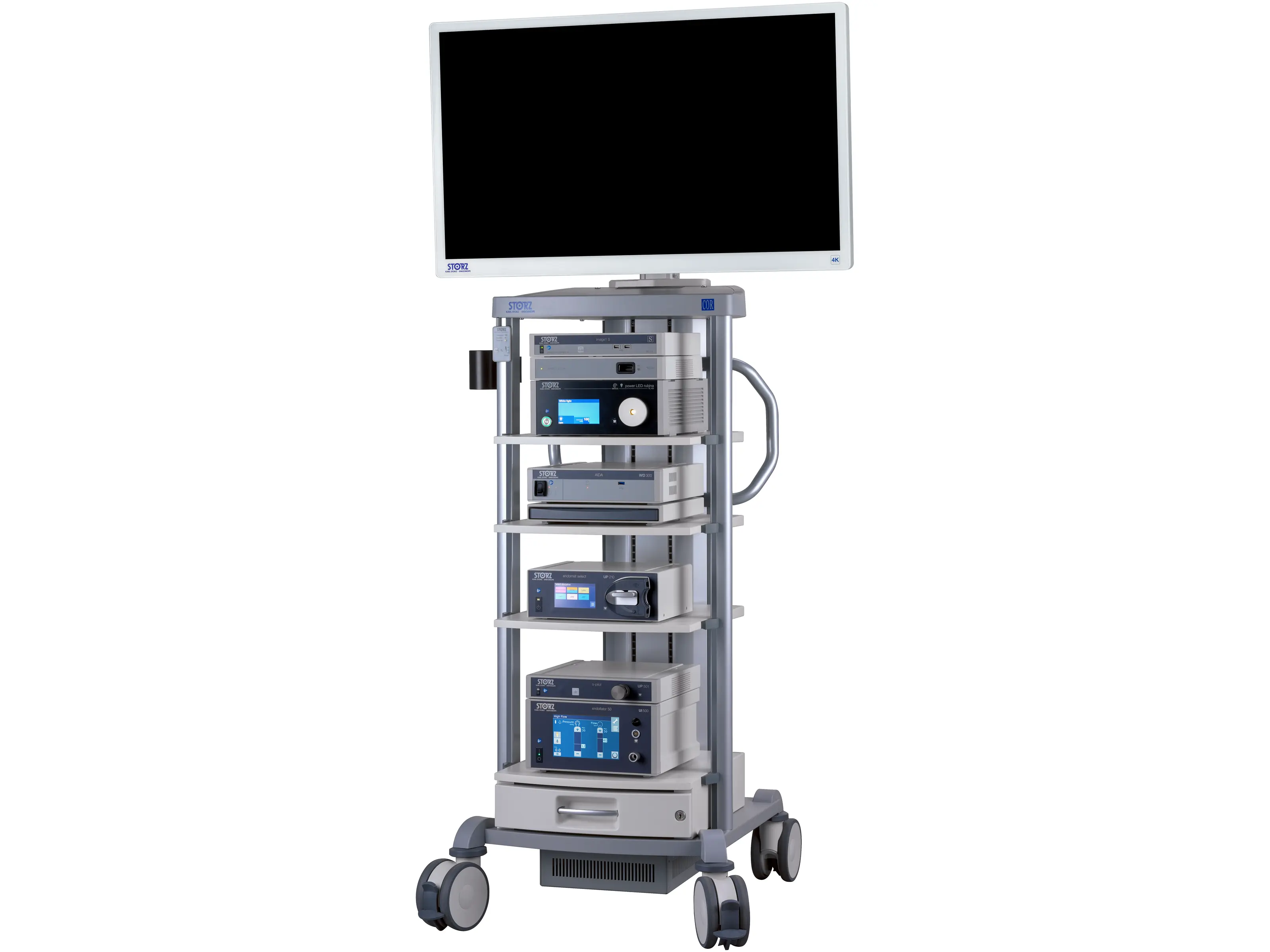 The 43" 4K monitor, which is suitable for use with COR equipment carts, presents an optimal solution between the existing 32" cart-based monitors and the 58" monitor with a separate mobile stand.