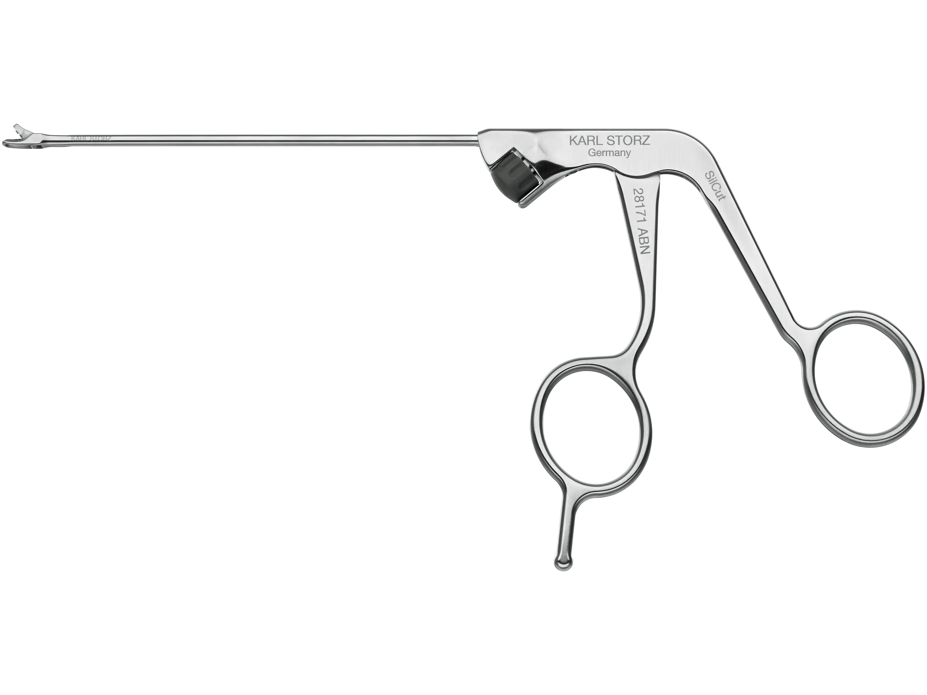 • Ergonomic handle for fatigue-free work while the large aperture angle of the instrument jaws allows efficient resection