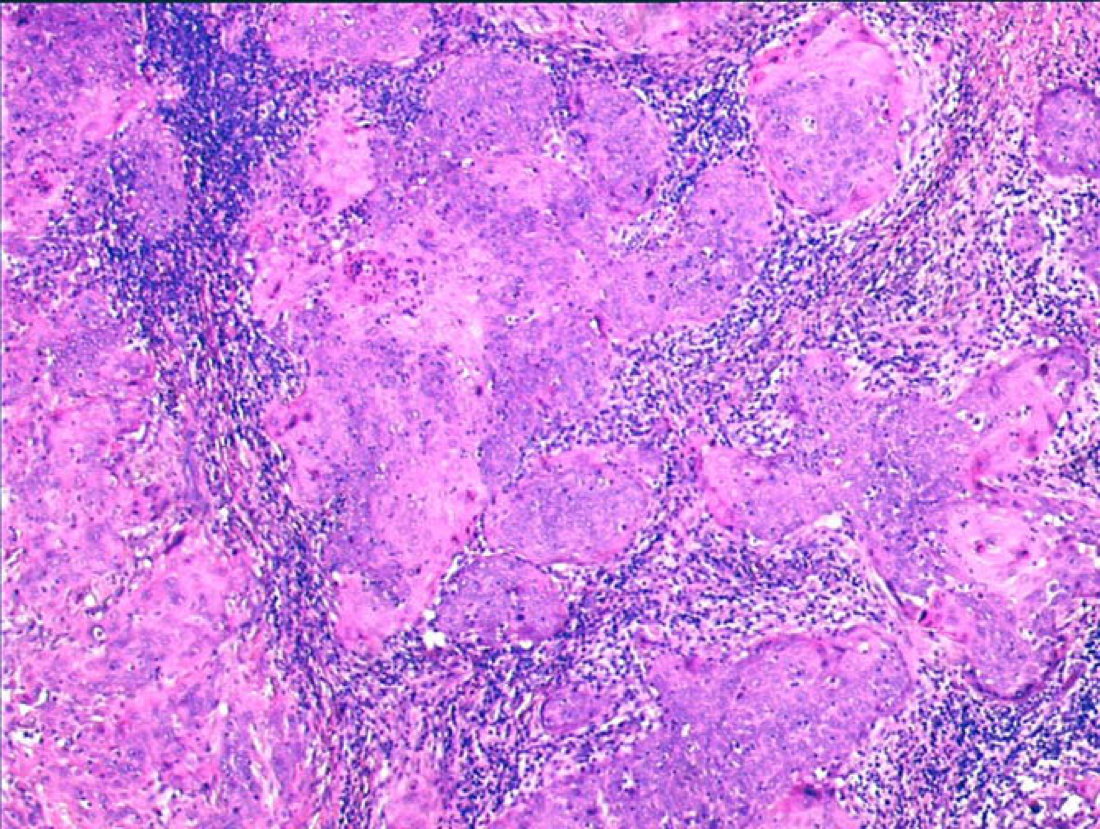 Endocervical curettage was performed and histology showed non-keratinizing squamous cell carcinoma.