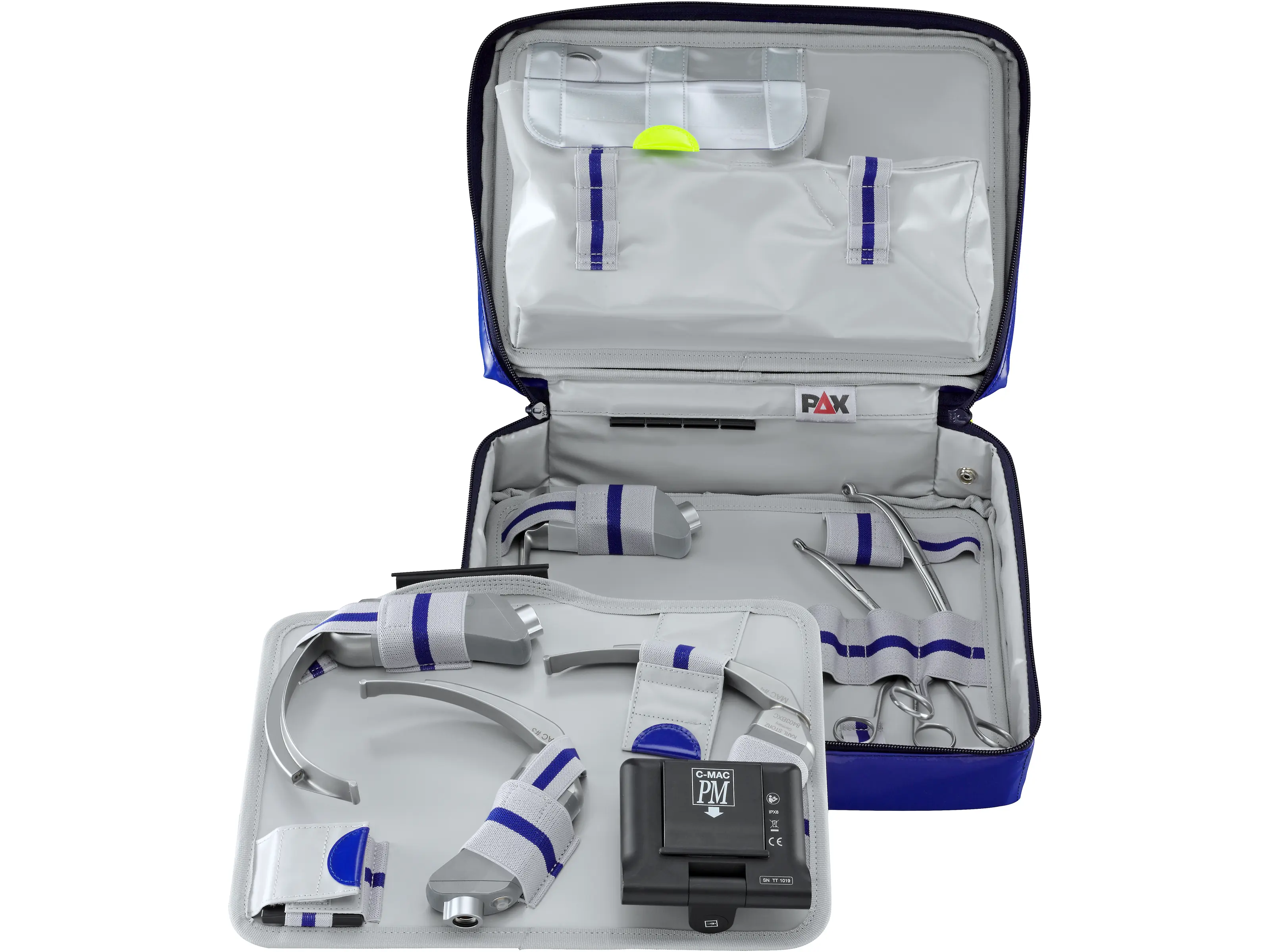 El set de intubación para asistencia prehospitalaria, modelo ULM, incluye componentes de la serie C-MAC® que permiten tanto la intubación directa como indirecta. El set se puede complementar con otras espátulas de videolaringoscopio de la misma serie.