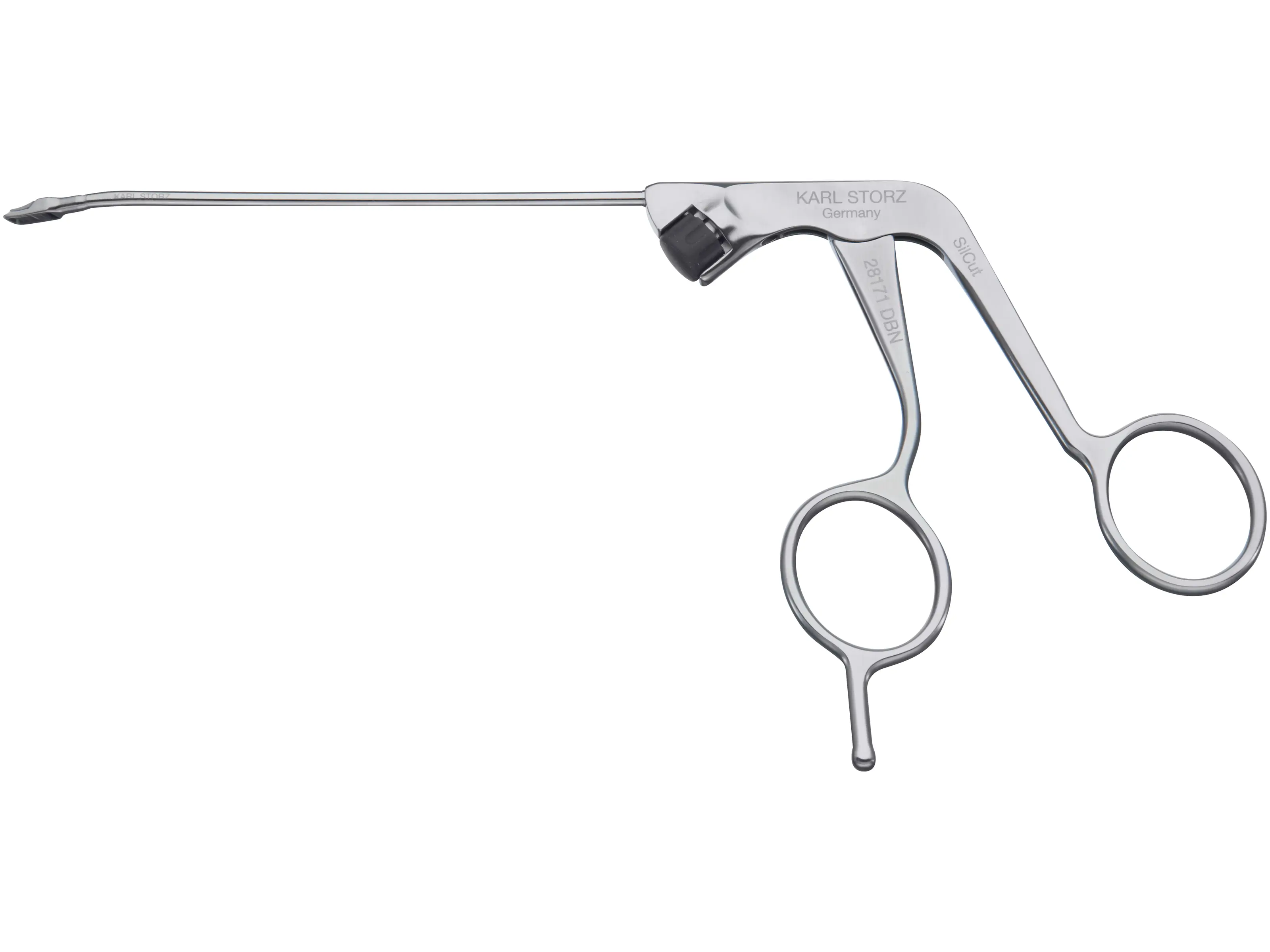 • Ergonomic handle for fatigue-free work while the large aperture angle of the instrument jaws allows efficient resection