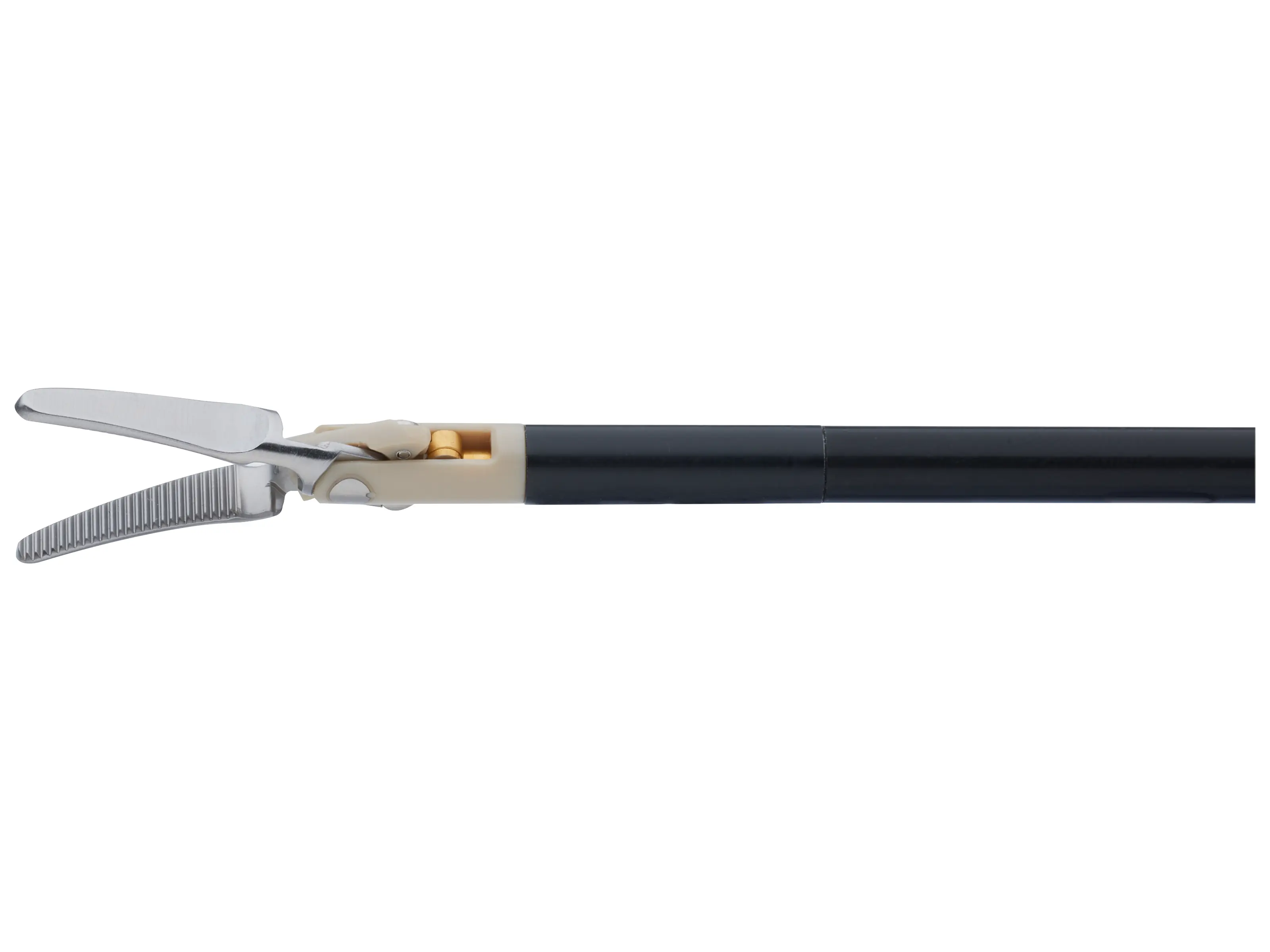 The HF connection (without a rotation stop) is mounted at a 45° angle on the upper side of the handle, thereby guiding the high frequency cable away from the field of operation